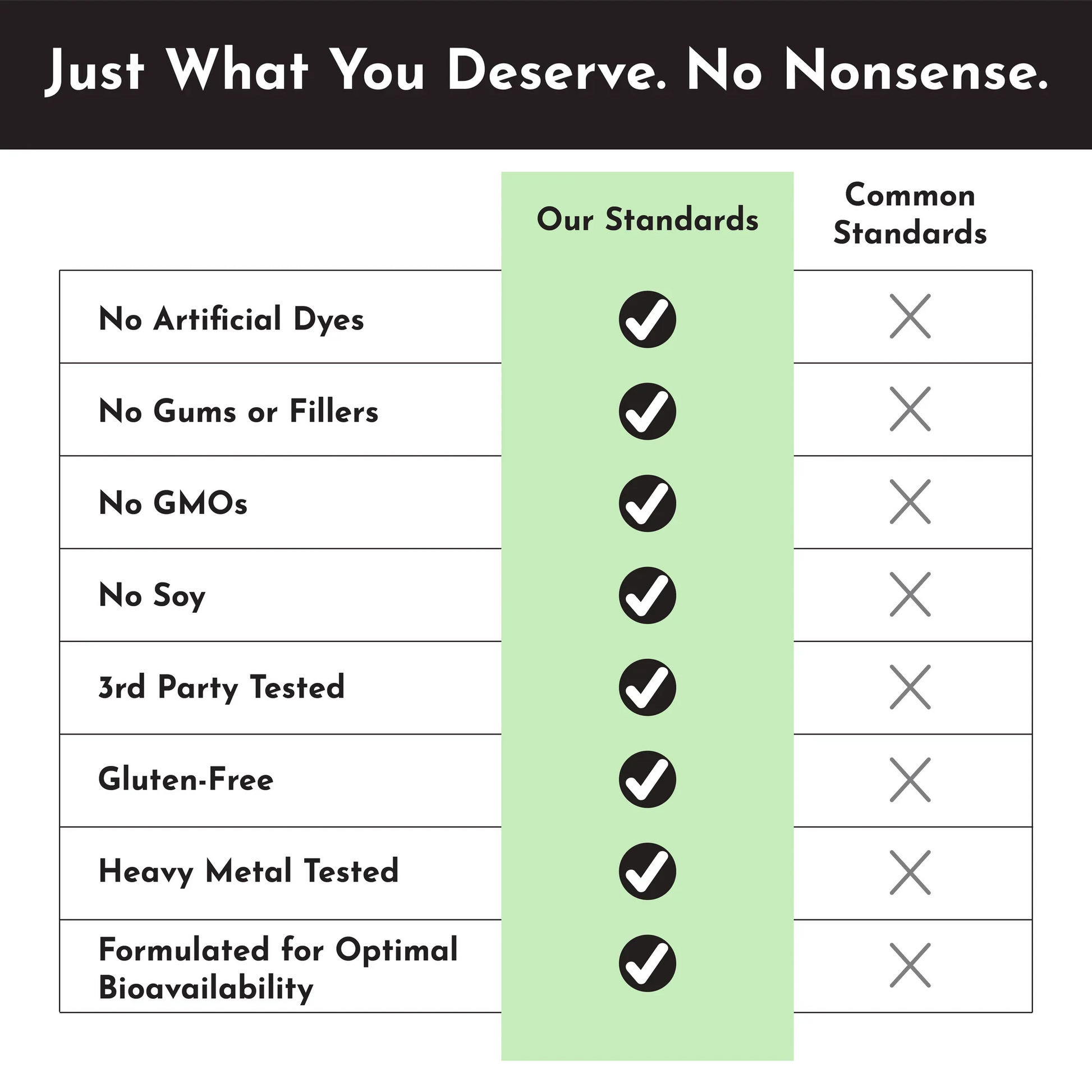 With our supplement, you’re getting the power of whole foods which can help your body absorb and use nutrients more effectively. These nutrient-dense ingredients can work together to ensure that essential vitamins and minerals are easily available for your body to use. This means you can get the health benefits packed into each serving.*