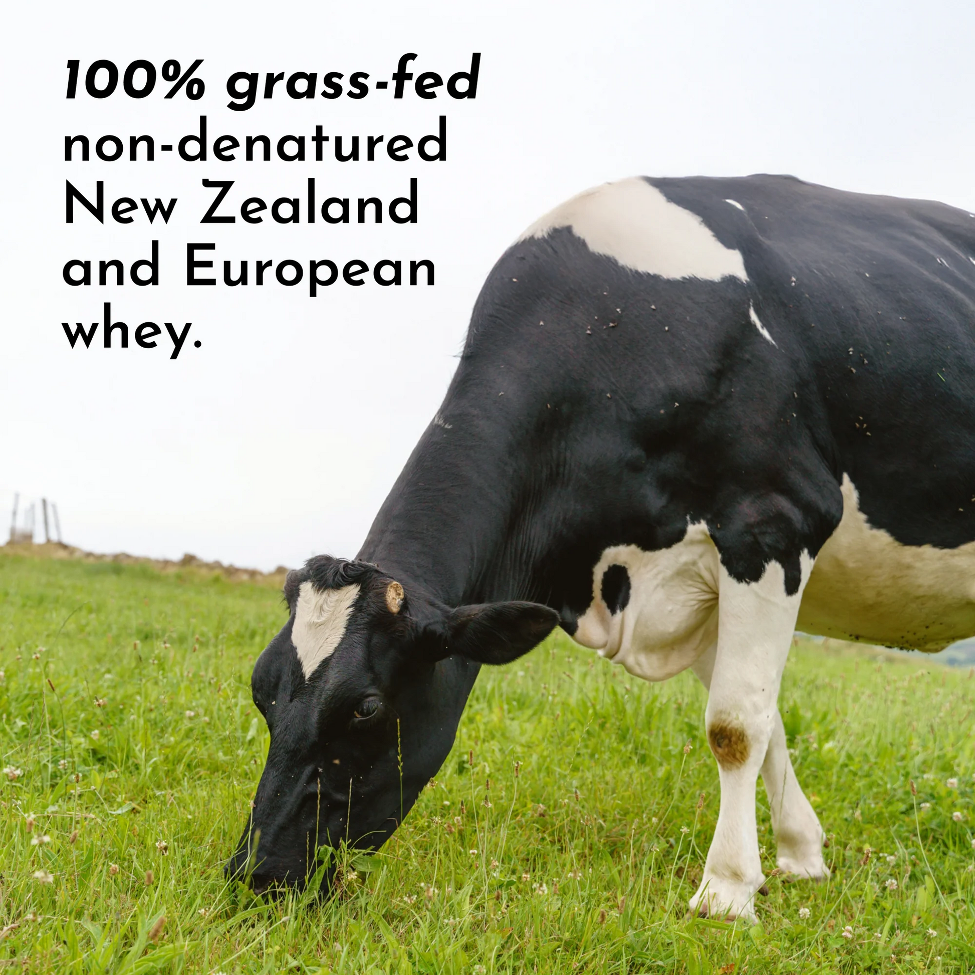 As cows graze on pasture, their milk naturally contains beneficial nutrients. To retain the protein structure, the whey is carefully processed, helping to maintain its quality.