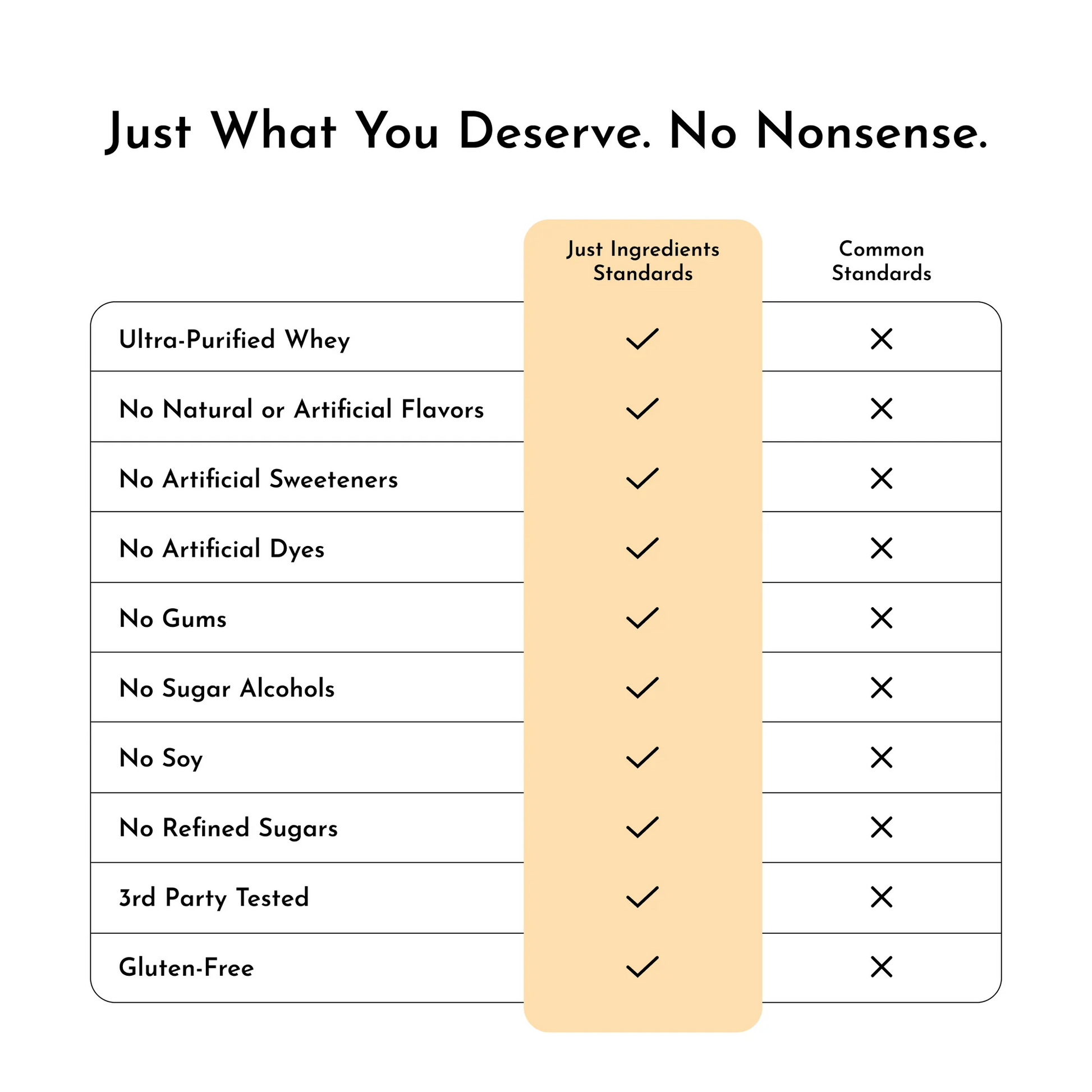 At Just Ingredients, we take pride in producing a protein powder that is free from artificial ingredients, added sugar alcohol, and natural flavors. Unlike many other products on the market, which may contain harmful additives and sweeteners, we believe in the power of whole food ingredients to fuel your body. By avoiding these additives and focusing on pure, wholesome ingredients, our protein powder provides you with the nutrients your body needs without compromising on taste or quality.