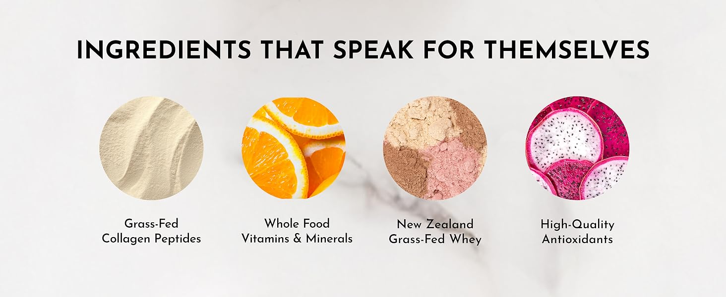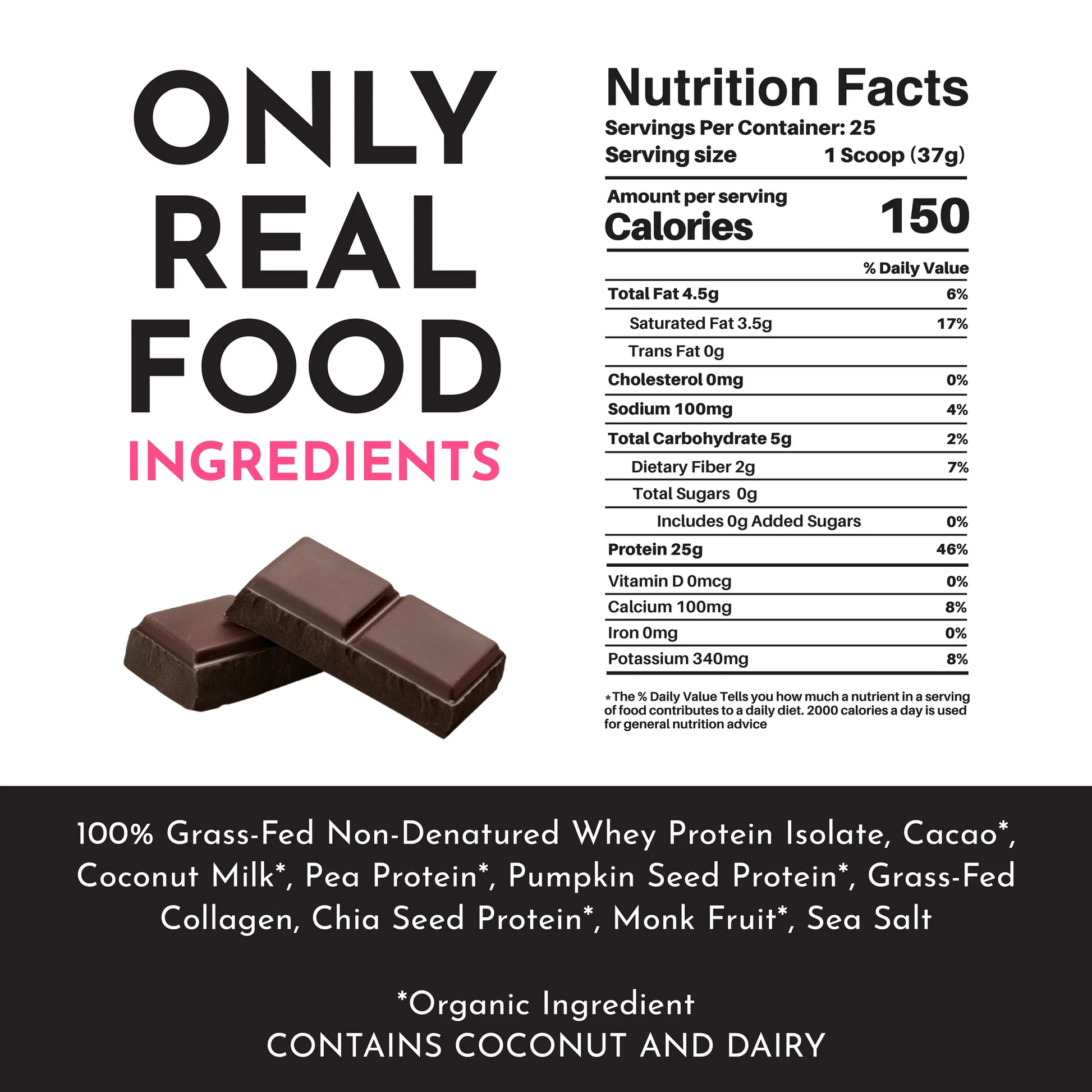 Protein powder – a 30-serving blend of 100% grass-fed whey and organic plant protein – supports muscle recovery, energy, and satiety* – free of artificial sweeteners and fillers.
