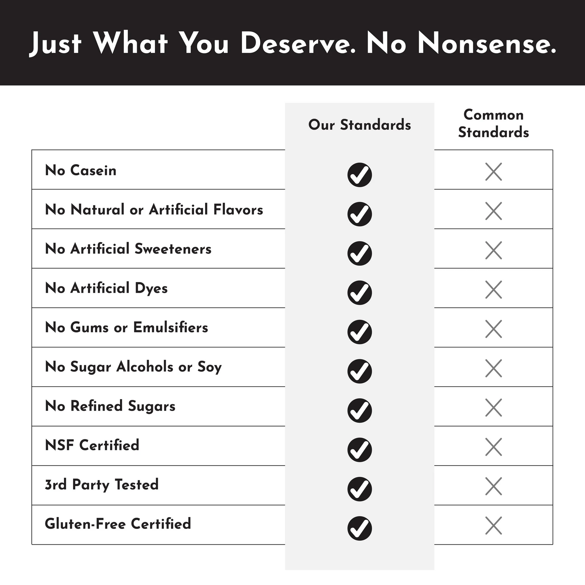 This NSF Certified for Sport® designation means our products have passed rigorous testing by NSF International, a trusted third-party organization focused on public health and safety. Each product is meticulously screened for over 280 substances banned in sports, including steroids, stimulants, and other contaminants that could compromise health or athletic integrity. This certification ensures that our protein powder is free from any substances banned by major athletic organizations, giving you peace of mind.